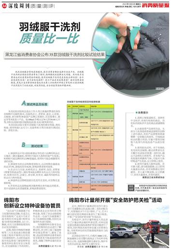 本次比较试验主要对羽绒服干洗剂的感官性能、理化性能、使用性能(去污力)、包装和标示等方面进行测试比较。详见右表:
