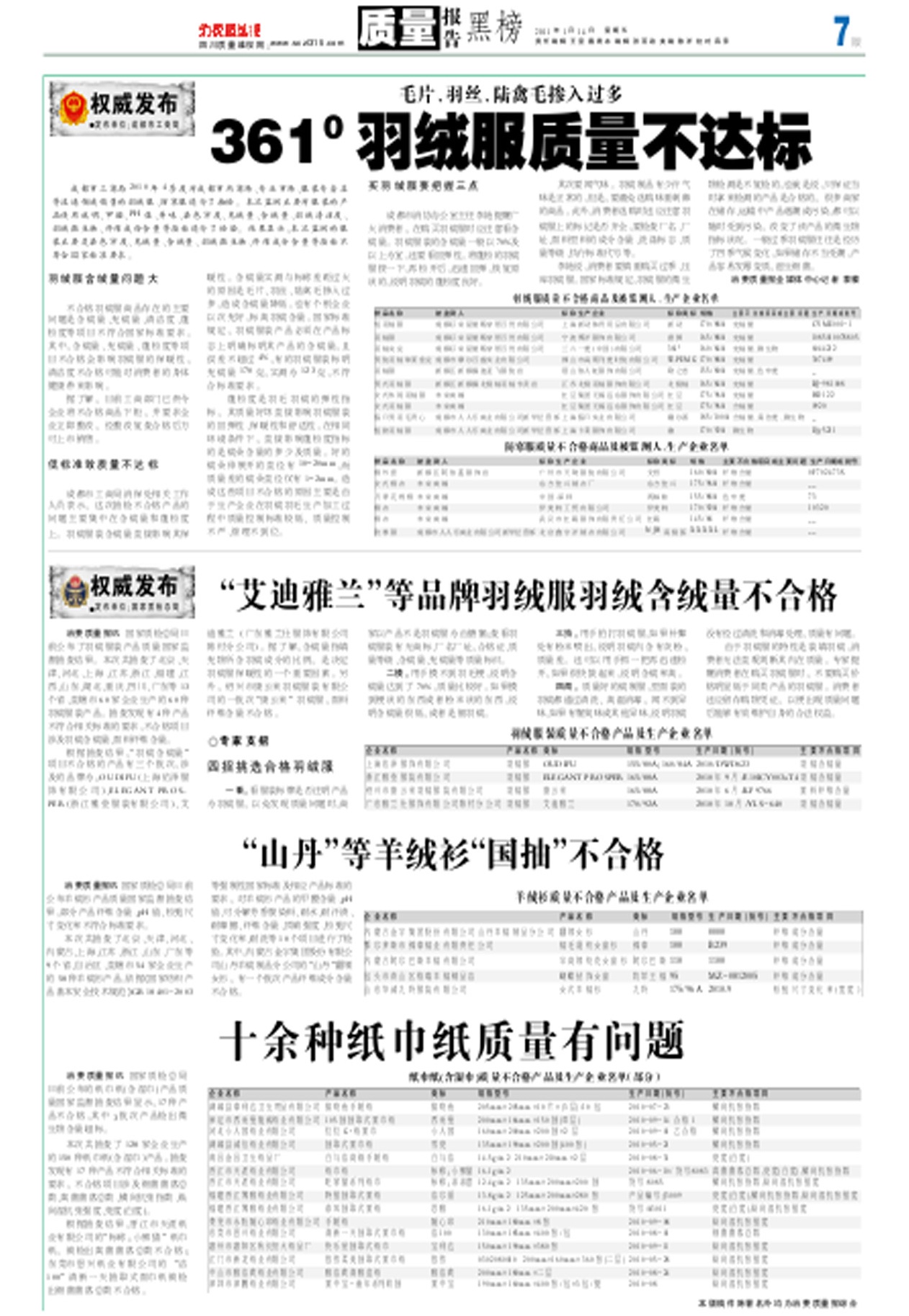 “艾迪雅兰”等品牌羽绒服羽绒含绒量不合格