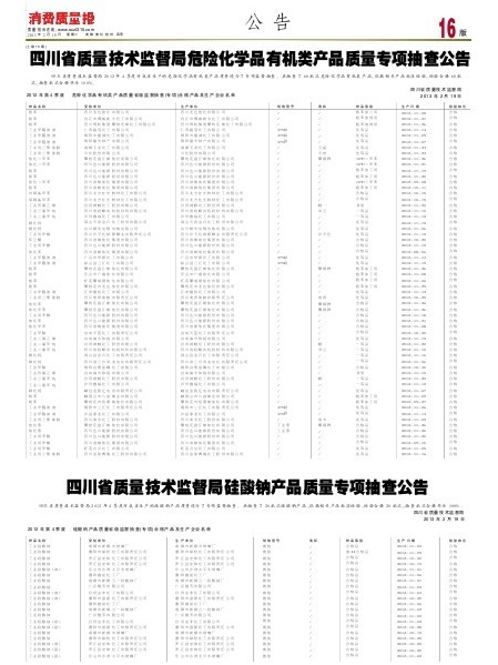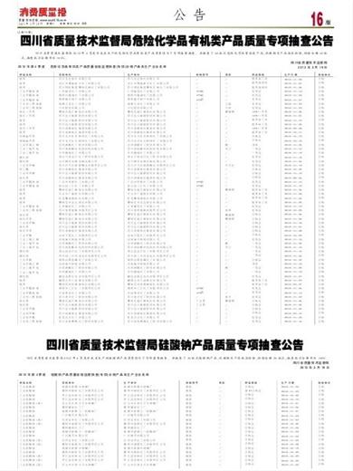 四川省质量技术监督局硅酸钠产品质量专项抽