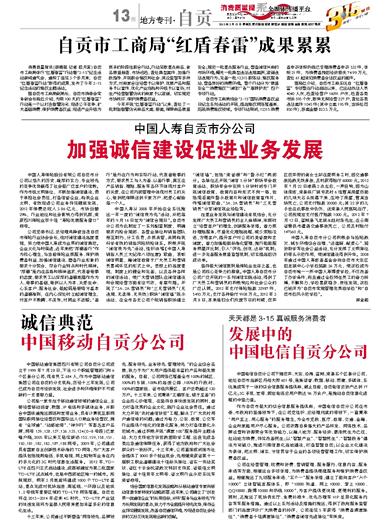 诚信典范中国移动自贡分公司