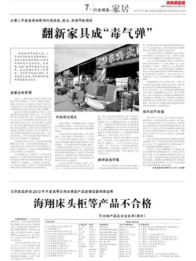 海翔床头柜等产品不合格