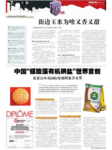 中国“螺旋藻有机碘盐”世界首创