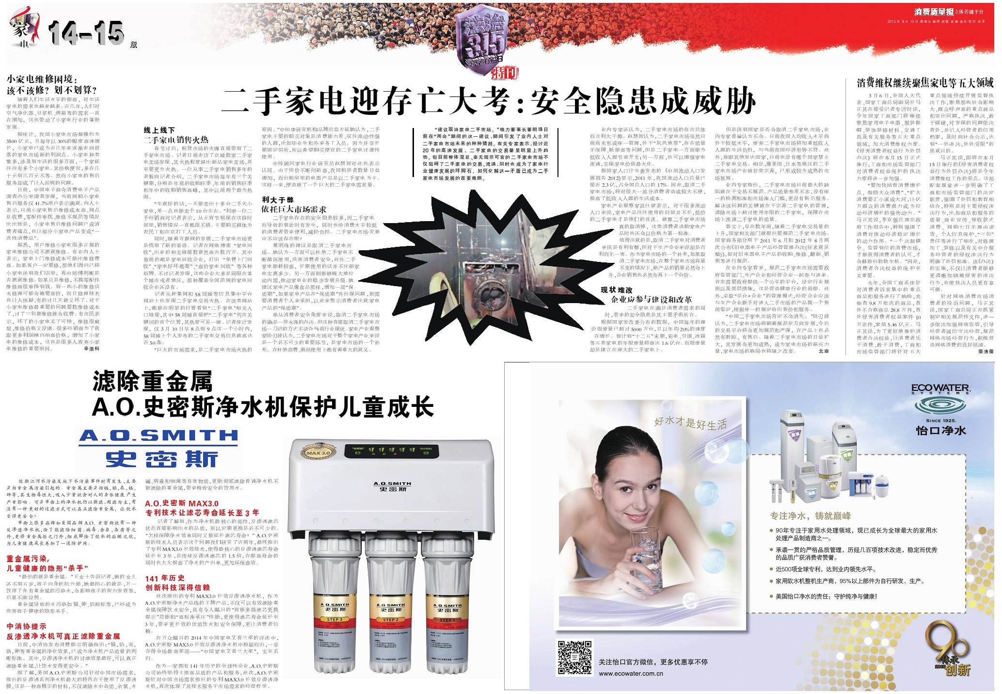 滤除重金属A.O.史密斯净水机保护儿童成