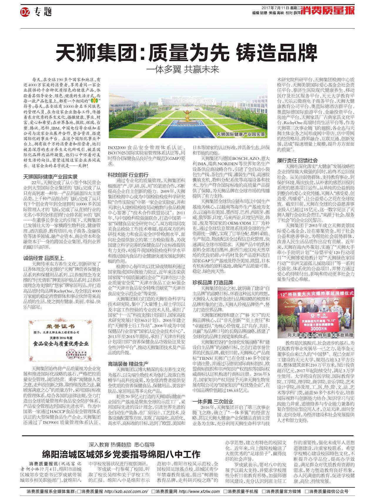 天狮集团:质量为先 铸造品牌