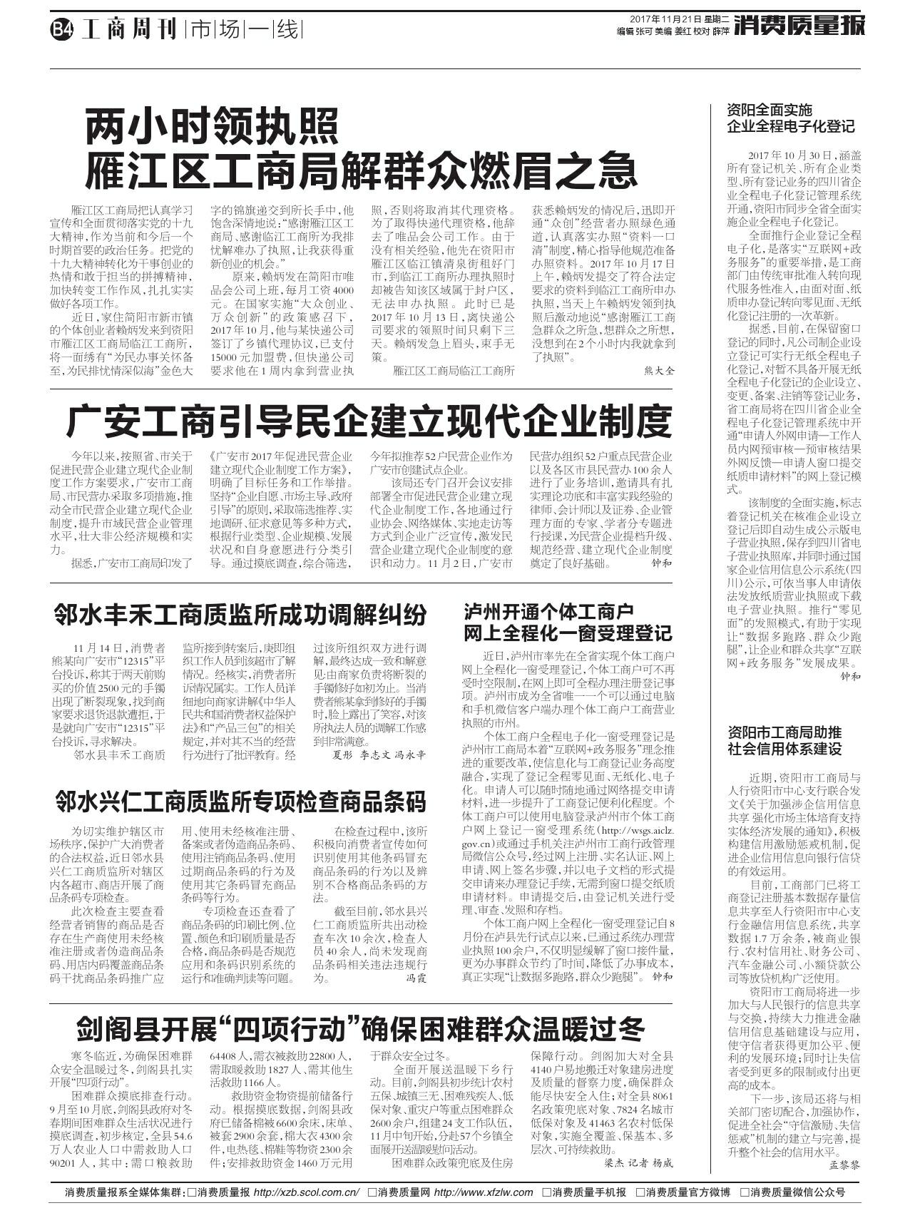 两小时领执照雁江区工商局解群众燃眉之急