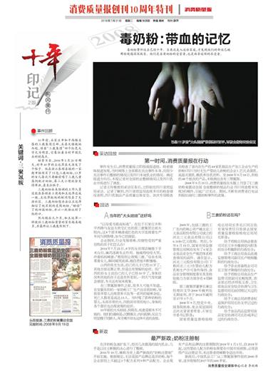 2008年9月19日,消费质量报在头版上刊登了《三鹿奶粉案震动全国全面整顿奶制品行业四川彻查暂未发现》的稿件,引起广泛关注。期间,不断有消费者打电话到报社询问三鹿奶粉事件的进展。