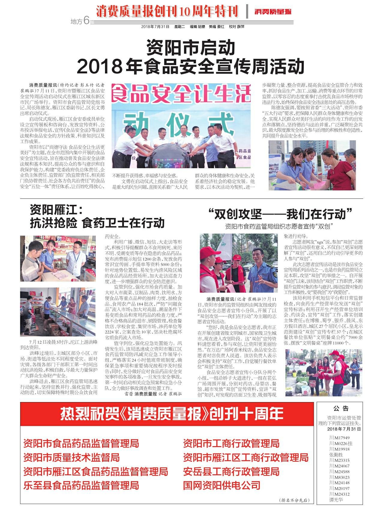 资阳市启动2018年食品安全宣