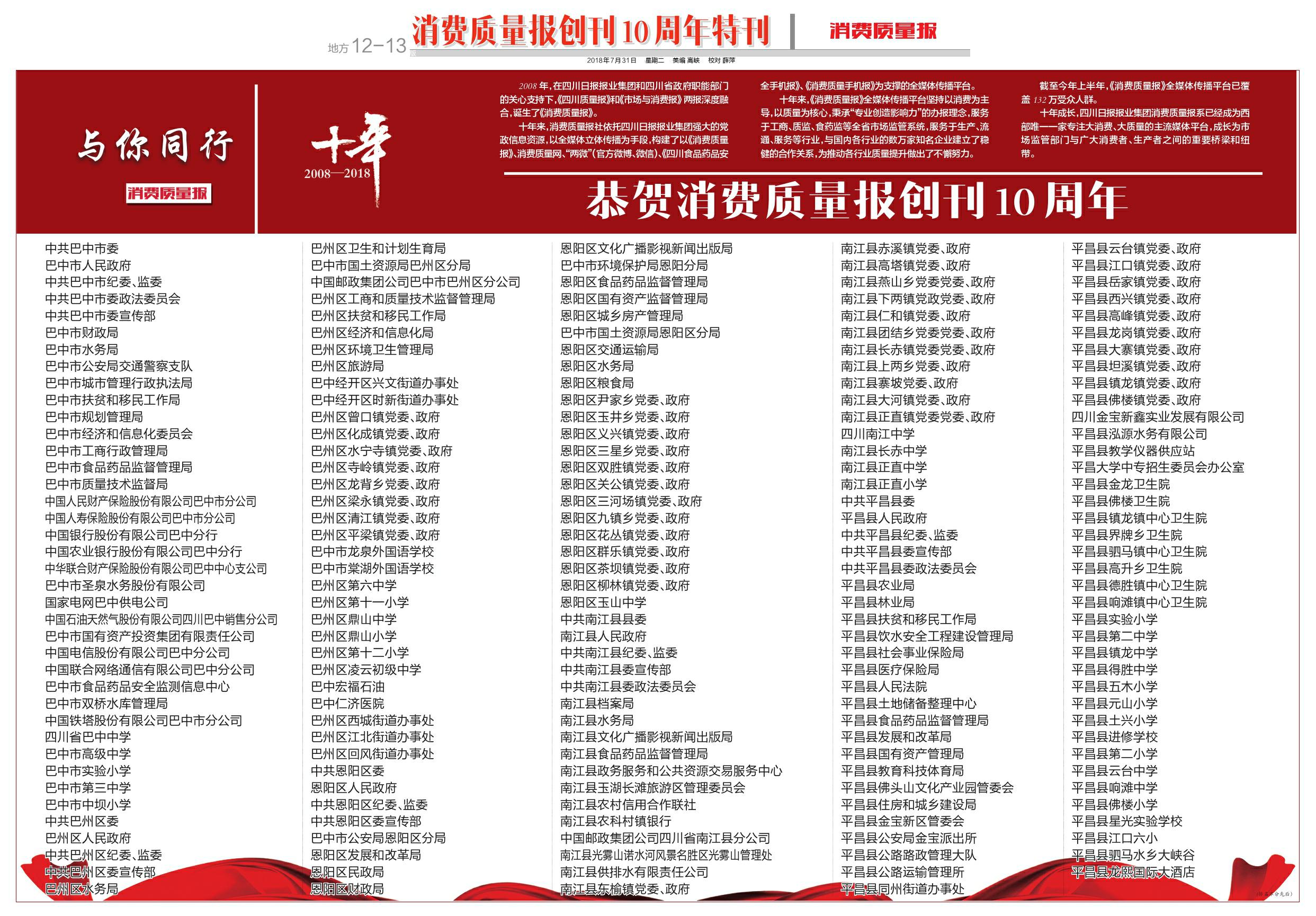 恭贺消费质量报创刊10周年