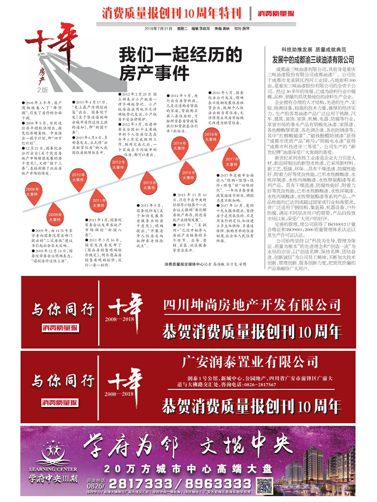 四川坤尚房地产开发有限公司恭贺消费质量报