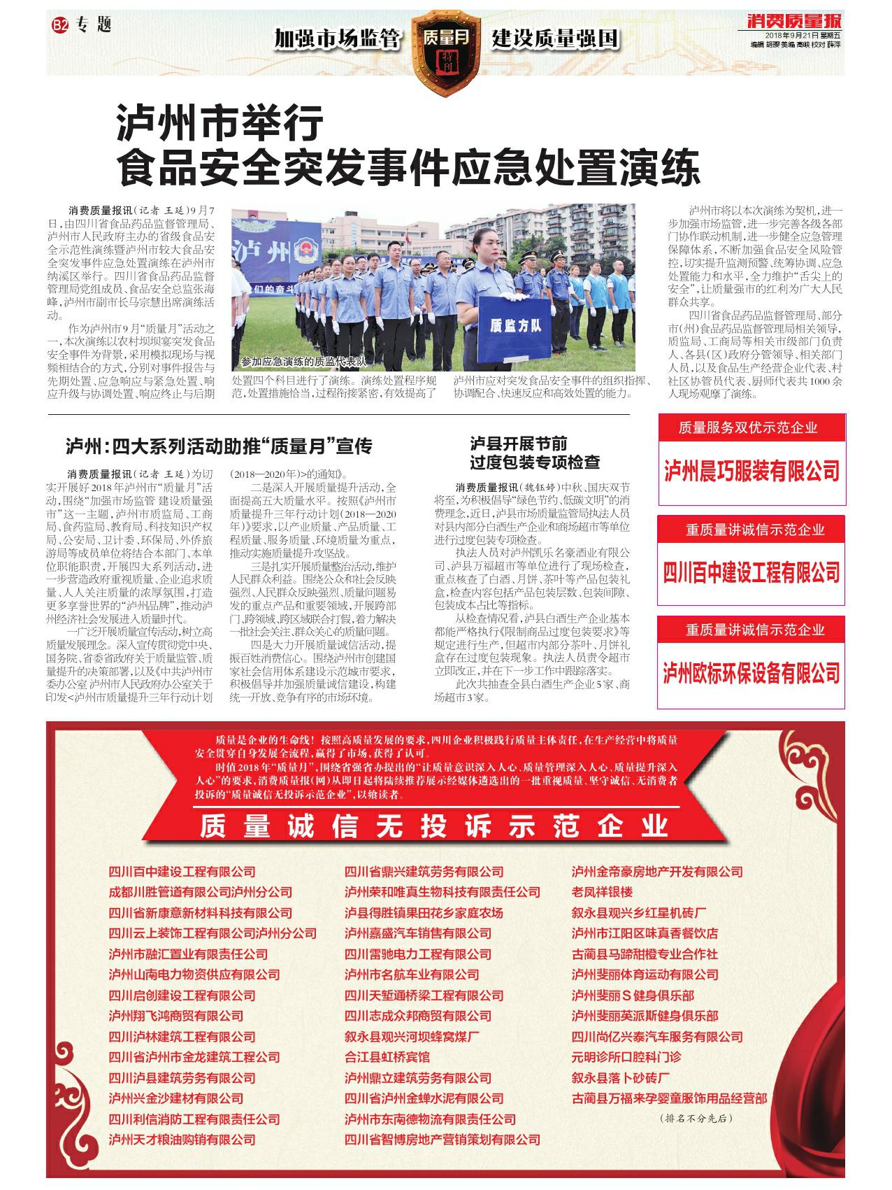 消费质量报讯(记者 王延)9月7日,由四川省食品药品监督管理局、泸州市人民政府主办的省级食品安全示范性演练暨泸州市较大食品安全突发事件应急处置演练在泸州市纳溪区举行。四川省食品药品监督管理局党组成员、食品安全总监张海峰,泸州市副市长马宗慧出席演练活动。