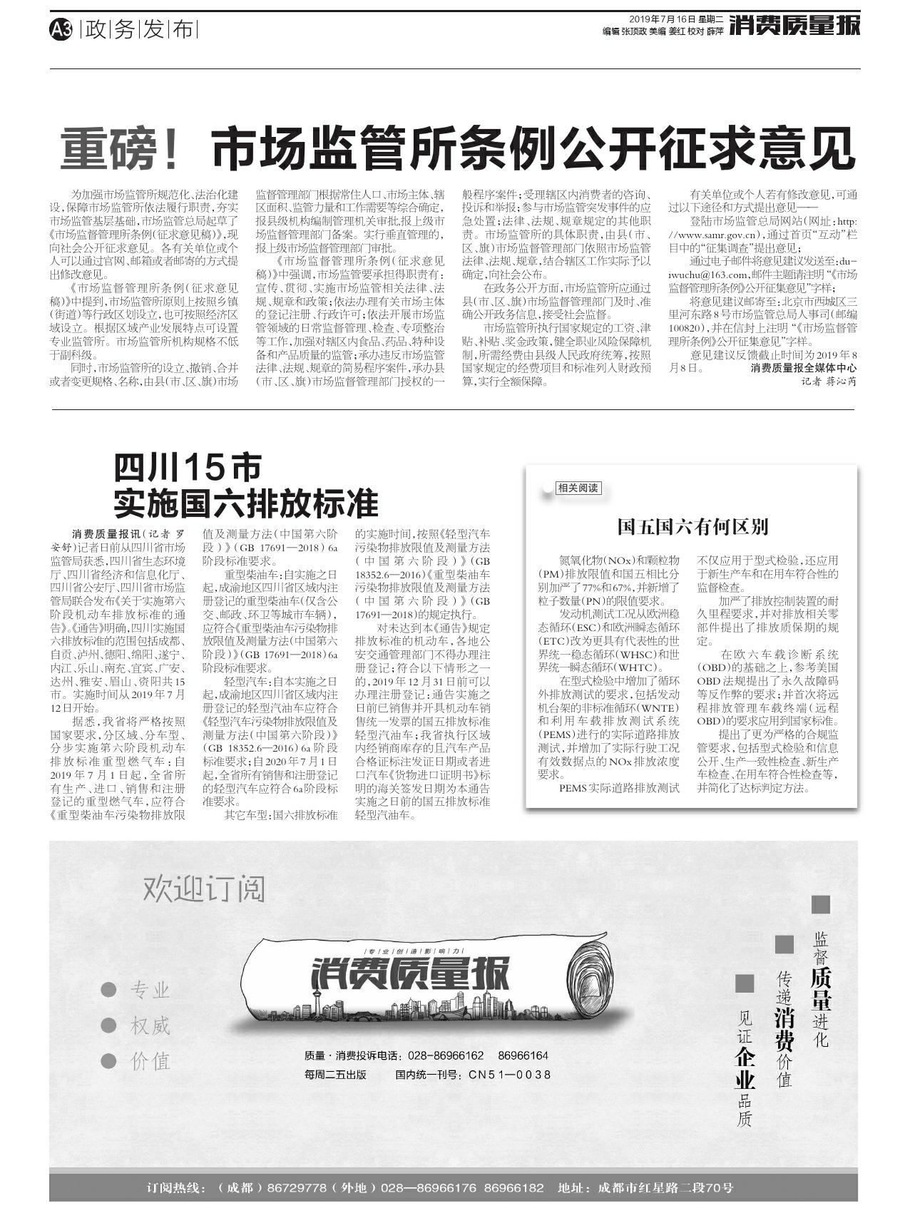 四川15市实施国六排放标准